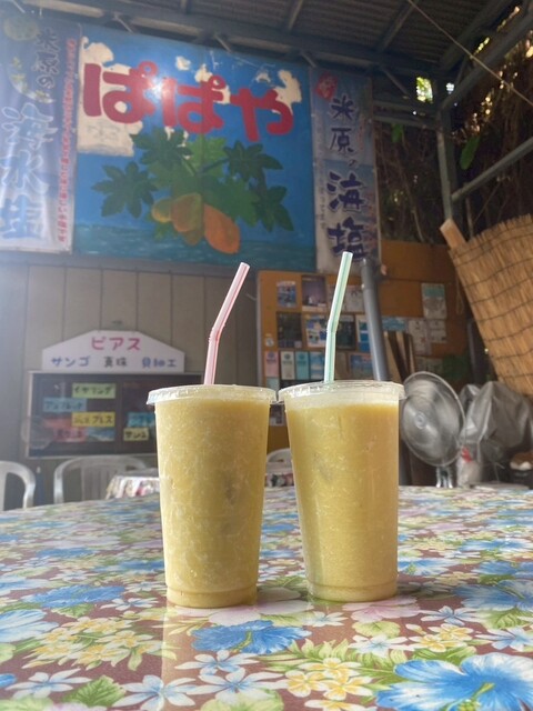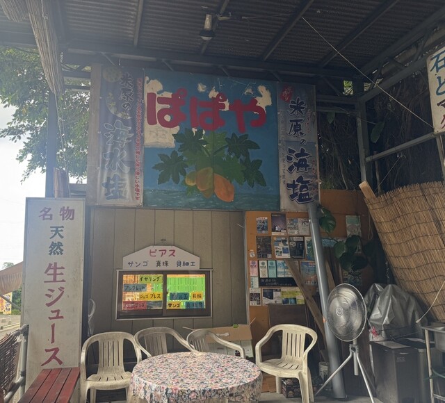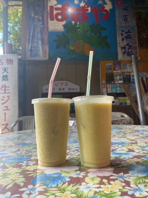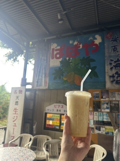 石垣島ドライブの途中、地元の人に教えてもらって立ち寄った「パーラー ぱぱ屋」さん。ここは南国の太陽と海風が似合う、小さなジューススタンド。派手な看板と、年季の入ったテーブルク...