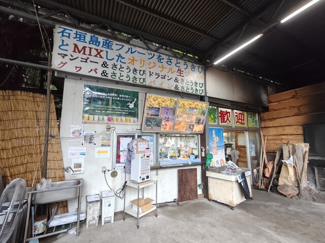 石垣島のヤエヤマヤシ群落近くにある老舗ジューススタンド。水や砂糖を使わず、島産フルーツ100%のフレッシュジュースを提供している。看板メニューは、優しい甘みのさとうきび生ジュースだ。