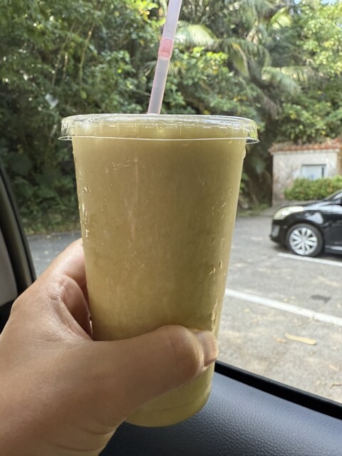 米原海岸から車で2分ほどの路地の突き当たりにあります。サトウキビジュースと、ブレンドのジュースを2人で飲みました。サトウキビジュースは自分には甘すぎて、ブレンドのジュースと交互に飲んでちょうど美味しい...