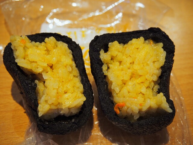 ブラックじゅーしーかまぼこは沖縄の伝統的な炊き込みご飯「じゅーしー」をイカ墨を練り込んだかまぼこで包んだユニー...