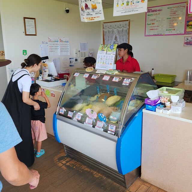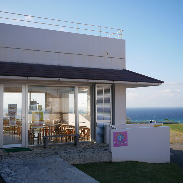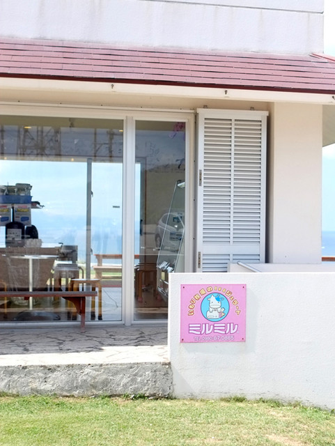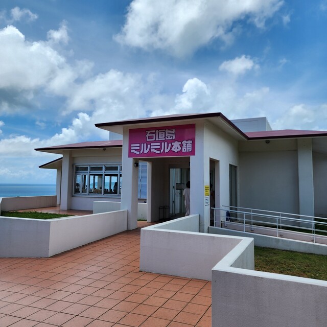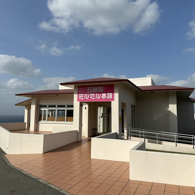 高台にある本店は素晴らしい景色と島食材をふんだんに使用したジェラートやハンバーガーなど豊富なメニューをご用意しております。遅めのモーニング、早めのランチやディナーにもぜひお越しください。売店も併設しておりますので、ミルミルオリジナル商品や、その他限定商品など取り揃えております。石垣島のお土産にぜひご利用ください!