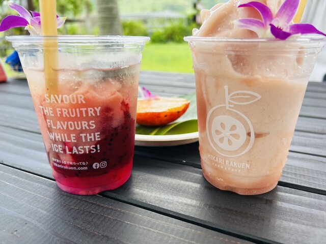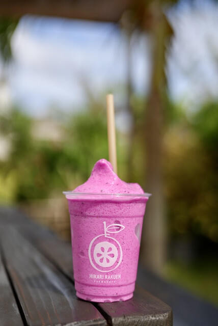 グァバなどを栽培する光楽園さんが営む人気のフルーツパーラーです。お店の裏手はオープンテラスになっていて、美しい景色を楽しむ事が出来ます。