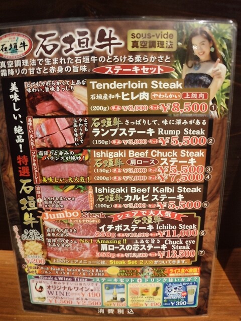 低音調理の手間と石垣牛を考えると妥当な金額ですが、安くてボリュームたっぷり、安いステーキを沖縄で食べ慣れていた私のサイフはスッカラカンになりました。(税務署に売上を把握される事を防ぐ為現金のみ)