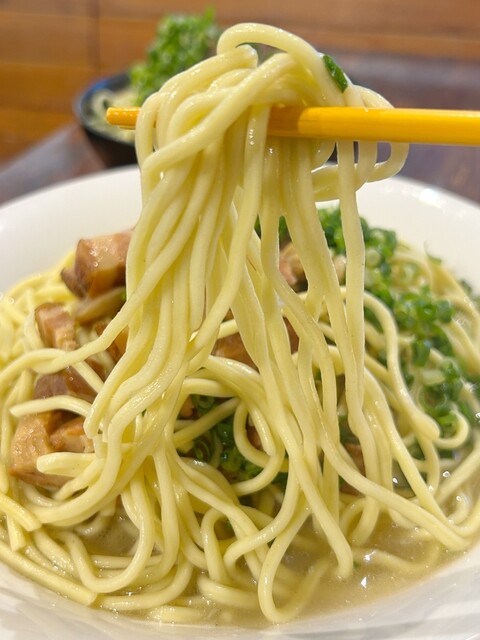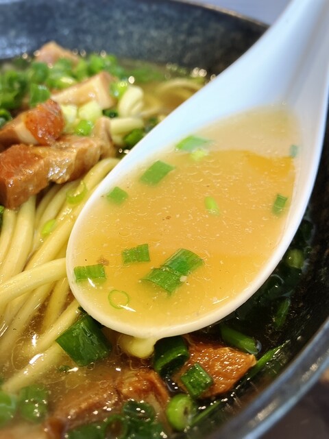 鰹や豚等々の旨味しっかりの濃いめの味付けのスープが特徴的