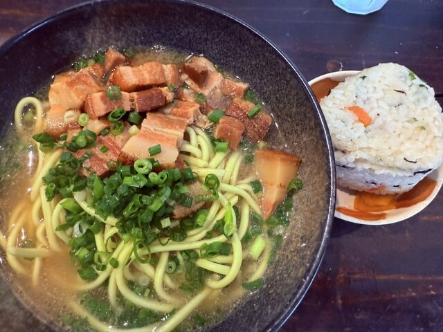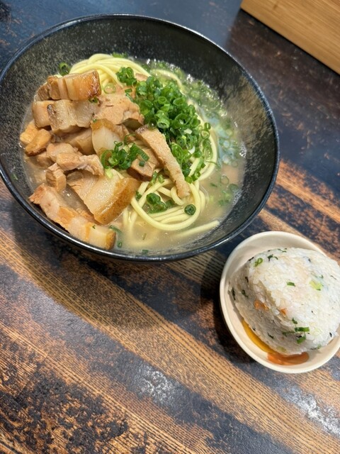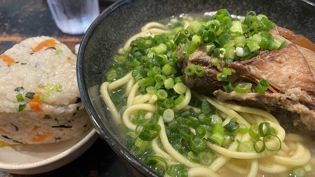 八重山そばとじゅーしーおにぎりを頼みました。