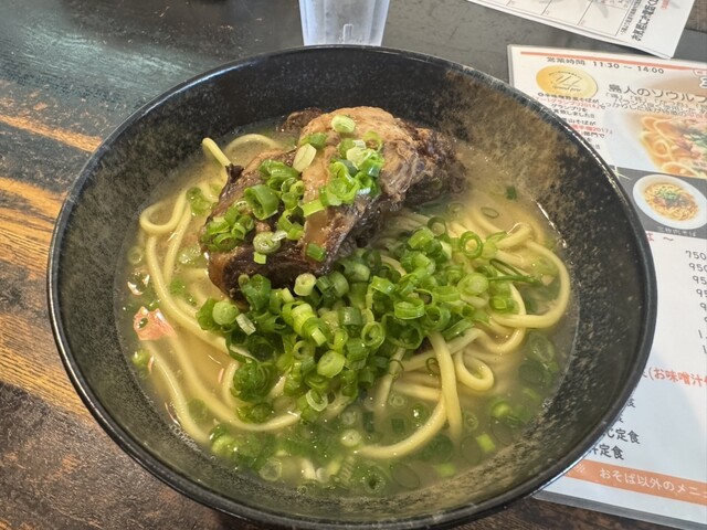 軟骨ソーキは豚肉のほぐれ具合が麺とスープと薬味とがばっちりの相性