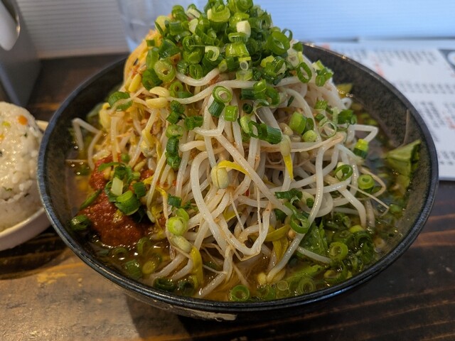 辛味噌野菜そば。思った以上に野菜もりもりで大満足。野菜の下にはちゃんとお肉も入っている。麺はもちろん...