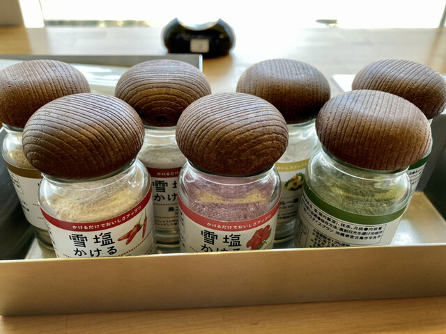 鉄板でシンプルに調理し、「雪塩」でお召し上がりいただきます。