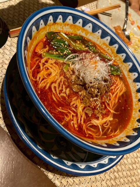 泊まったホテルの中にあった「琉球新天地」で夕食。今回は担々麺をいただきました。見た目からして食欲をそそる真っ赤なスープに、細麺がきれいに絡み、ひと口目からしっかりコクと旨みを感じます。ゴマの風味と辛さ...