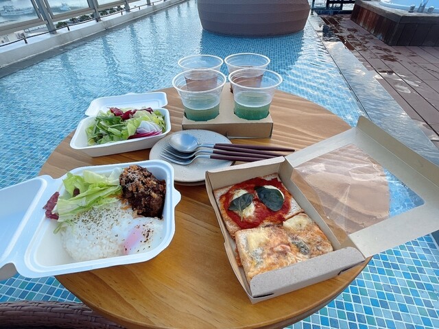 チェックインすると15時から、食事と飲みができるというホテルです。17時になると更にメニューが増えます。注文が携帯電話からQR読み込みなのと,一つ一つの料理の量は多くないので、ほぼ全種食べました。全体...