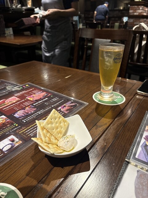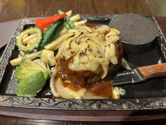 久しぶりの石垣島、一人で食事は今日だけなので新規開拓しようと街ブラ。730交差点でお洒落な雰囲気。 でも店内にお客さんは誰も居ない、お店の人と見つめ合うこと5秒。入店することに。 店内に入って、さらにお洒落な感じ。 色々お肉系のメニューが豊富。 でも一人なので無難にハンバーガーにすることに。 まずはチャージの付け出し。生ハムが出てきました。 注文は悩んだ末に、ブラックキャブ1210円と... 詳細を見る