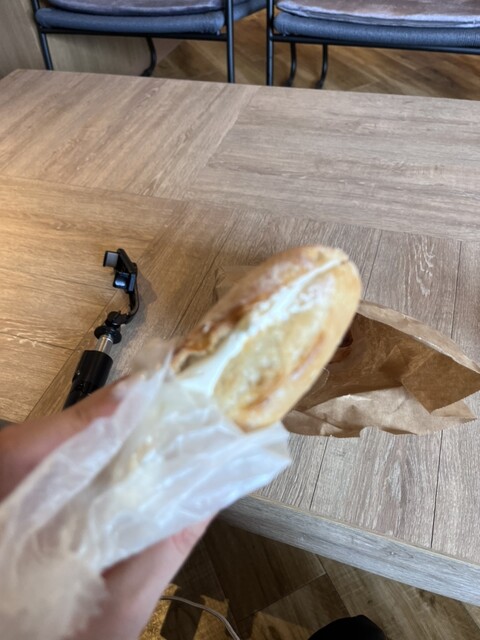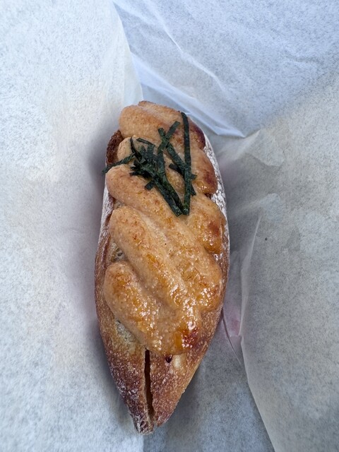 そのあとの移動の合間でランチタイム。コチラの明太フランスは、明太子入りのマヨネーズ...