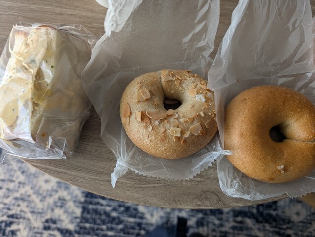 ベーグルはアーモンドのものを買いましたが、モッチモチでおいしかったです。