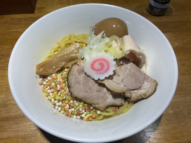 前回は特製塩ラーメンを試してみましたが、今回は特製醤油ラーメンを注文して味比べしてみました。 トッピングは前回同様ナルトにメンマとほうれん草、鶏肉と豚肉のチャーシューが2枚ずつ。 味玉は前回と違っていました。 スープをいただくと塩味は濃いめながらも飽きない味。 麺との相性は醤油の方が... 詳細を見る