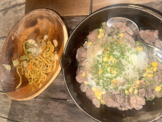 野菜や焼きそばもついてて最後までしっかり満足。〆のバニラアイスも良きでした◎