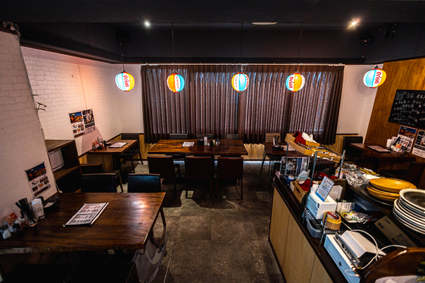 | 空間・設備 | オシャレな空間、落ち着いた空間、席が広い、カップルシートあり、カウンター席あり、スポーツ観戦可、プロジェクターあり、電源あり、無料Wi-Fiあり、車椅子で入店可 |