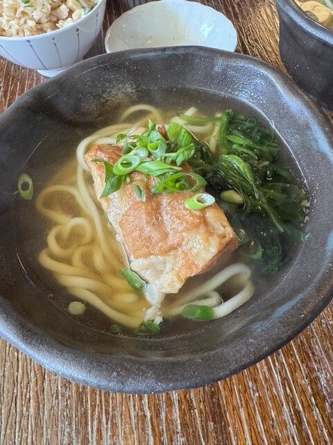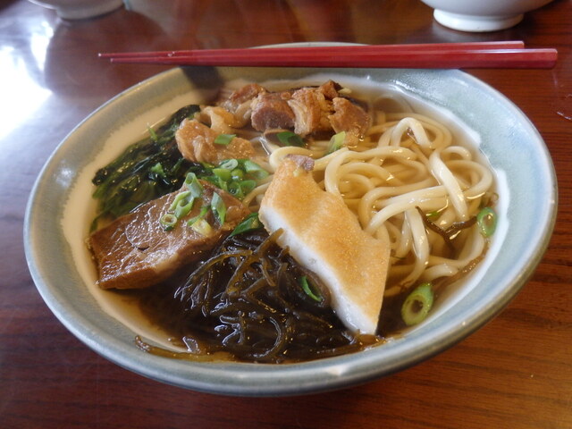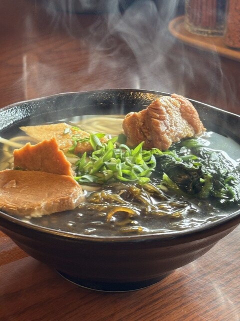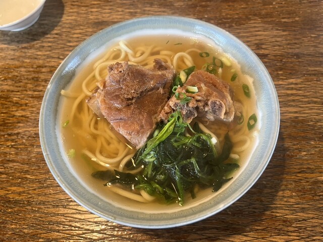 日曜13:20に2名で訪問し、外に10人ぐらいの列が。そこそこ待つかと思いきや、回転がとても早く待ち時間は10分。 【注文】 ソーキそば(税込880円) もずくトッピング(税込120円) じゅーしー(税込200円) KOJASOBA(税込880円) 注文して10分もせず着丼。 ... 詳細を見る