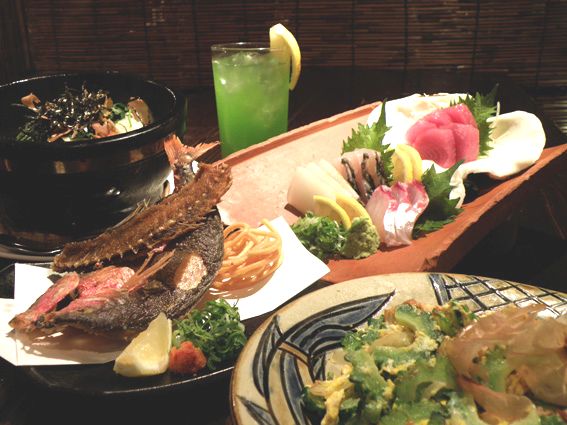 郷土料理や泡盛を味わいながら三味線ライブが楽しめます。 宮古島の朝採れの新鮮野菜や久米島近海で獲れた鮮魚を使い、定番のチャンプルーはもちろん! 日替りの郷家オリジナルの創作料理も味わえます。 毎日19:30から開催の島唄ライブは地元民も観光の方にも大人気!