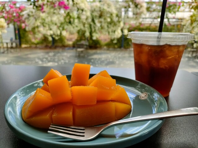 通常は8月ごろに生?マンゴーの提供は終了するそうだが、今年は台風等の影響で9月末ごろまで提供していた...