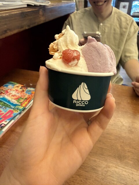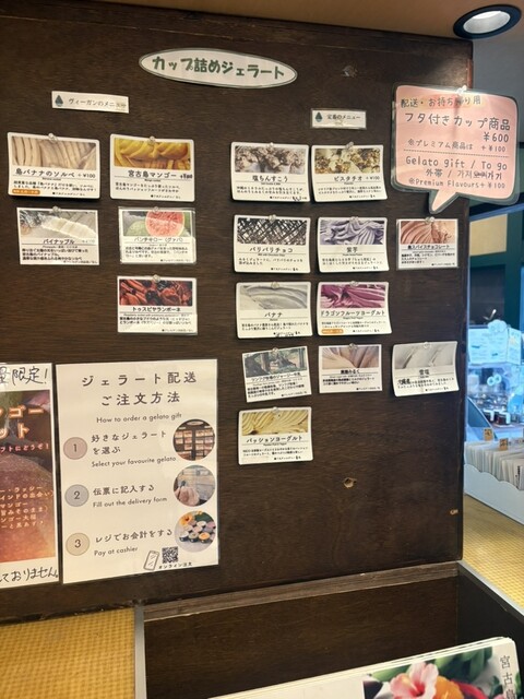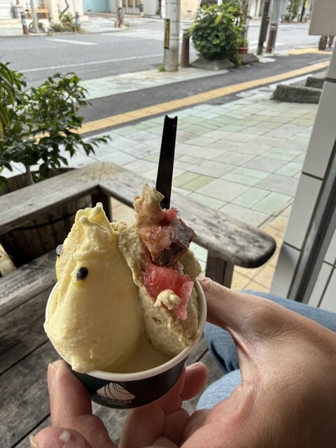 初宮古島旅行で気になったので行きました。11時からオープンで並んではいましたが回転早くその日によってジェラートの味が違うようです。美味しかったのですが、かなりいいお値段するのでコスパは良くないですが観...