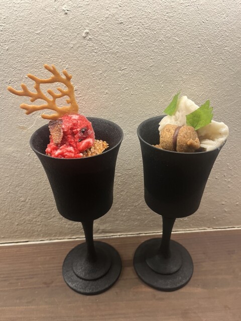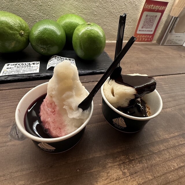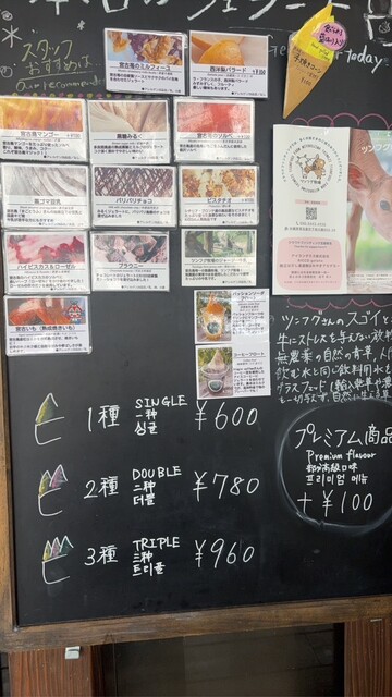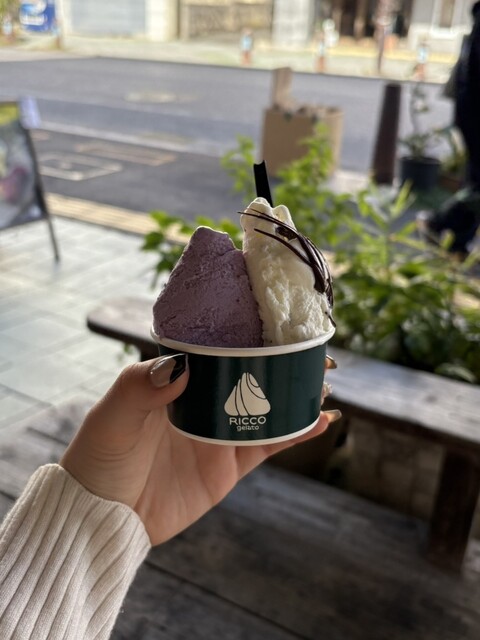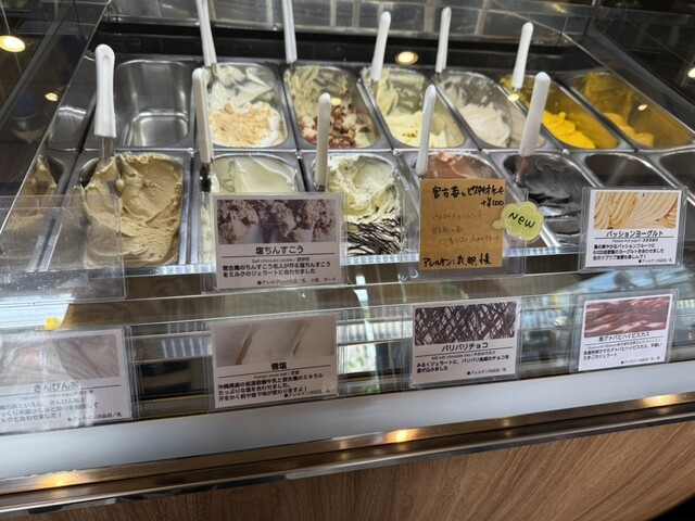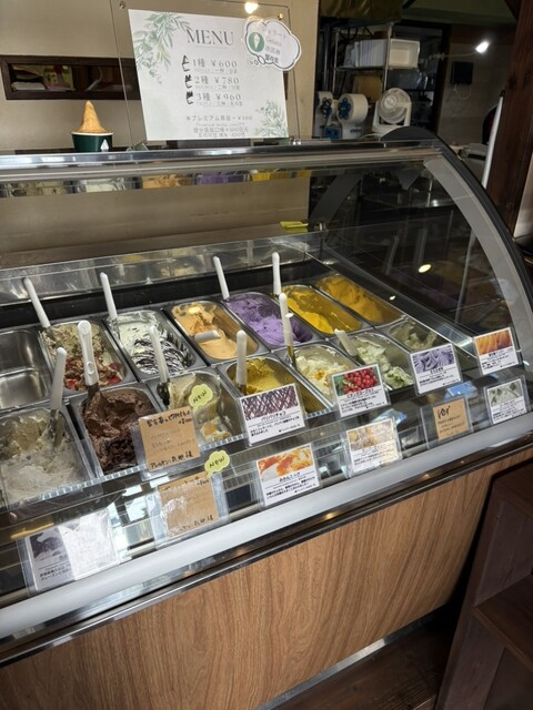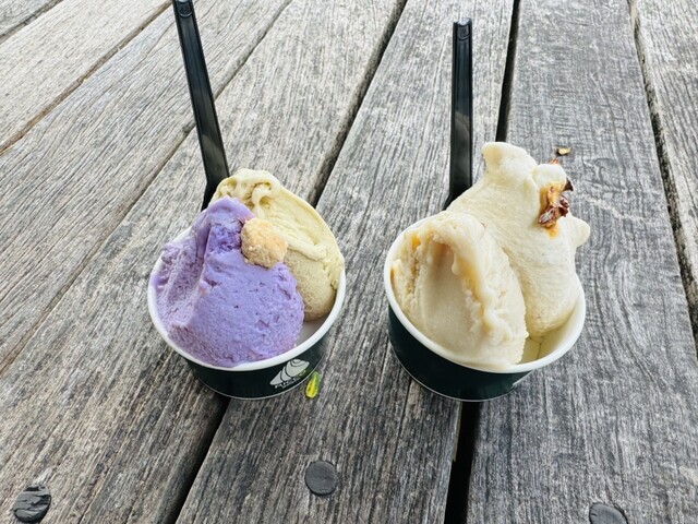 日曜日の16時頃伺い、ダブルカップでミルフィーユと紫芋を選びました。紫芋は濃厚で、ミルフィーユは果肉がゴロゴロ入っていて美味しかったです。
