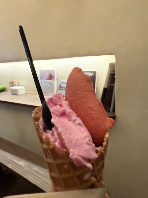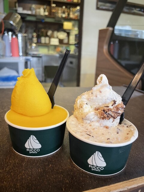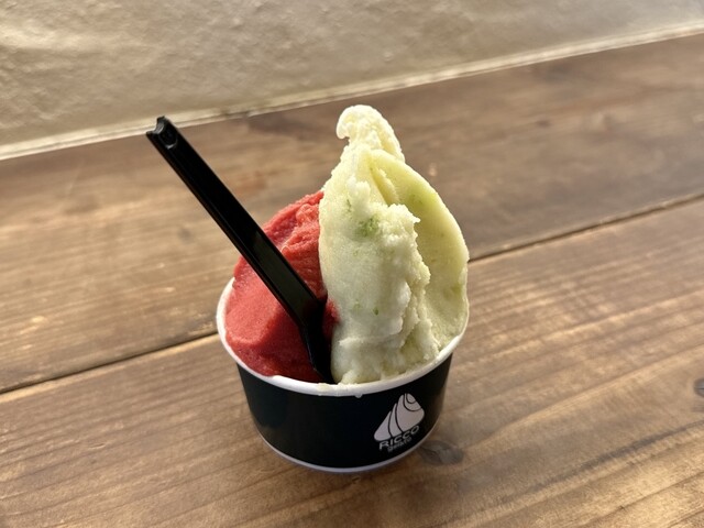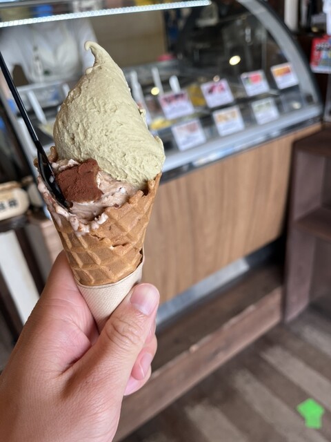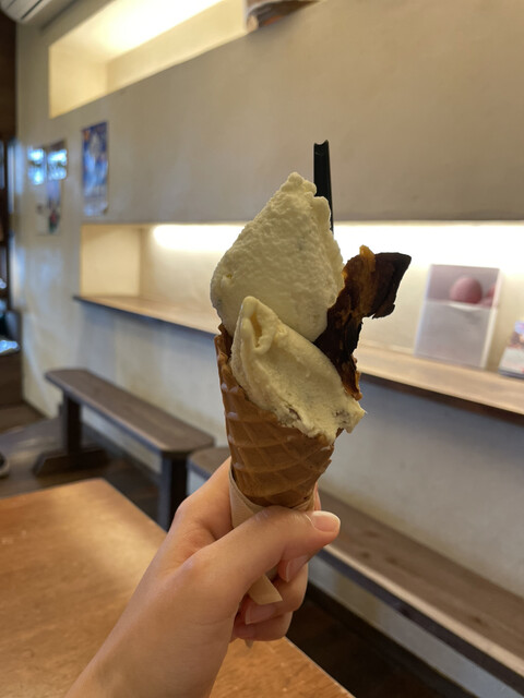 ダブルのコーンを注文。フレーバーはティラミスとピスタチオをチョイスしました。どちらも甘さ控えめですが、濃厚な味を感じるジェラートです。価格はそこそこしま...