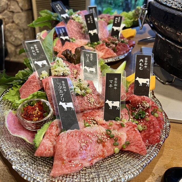 『炭火焼肉 琉宮苑』が贈る最上級のセットをご用意いたしました。 宮古牛のロースやカルビなどが入った盛り合わせや宮古島産有機野菜のサラダにデザートまでご堪能いただける豪華な内容です。 接待やビジネス宴会、観光で来られた方へのおもてなしにもおすすめ。 どうぞごゆっくり、宮古島での焼肉をお愉しみくださいませ。