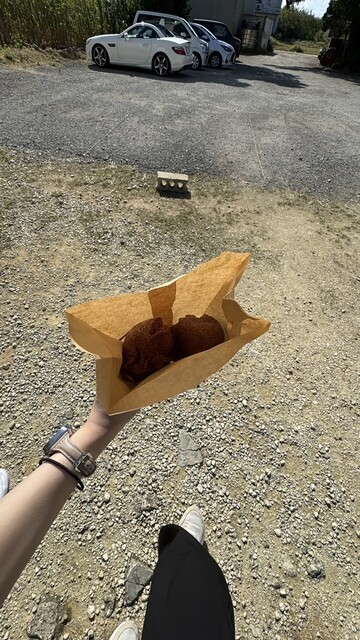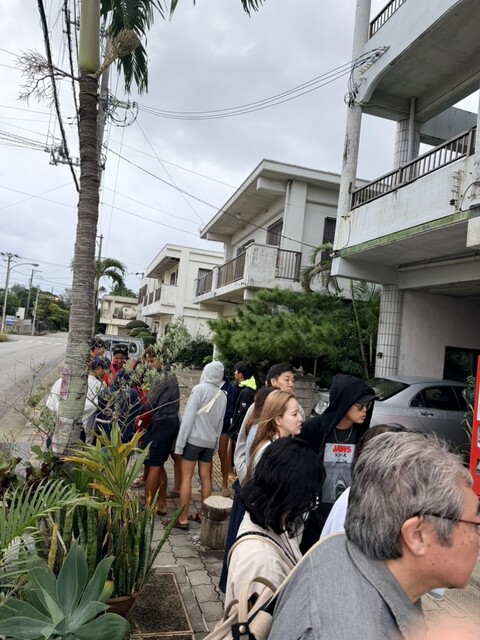 伊良部島にてサーターアンダギーが食べたいということで午後の部13時30分開店の30分前で30人程度の並び。結果40分ほどで購入。