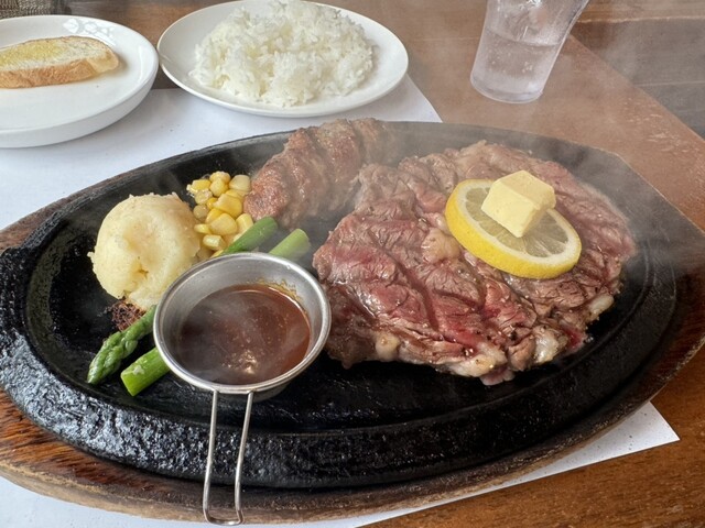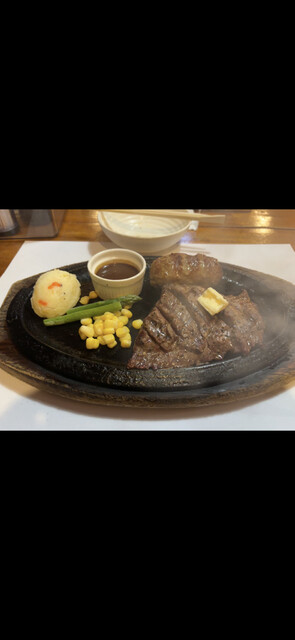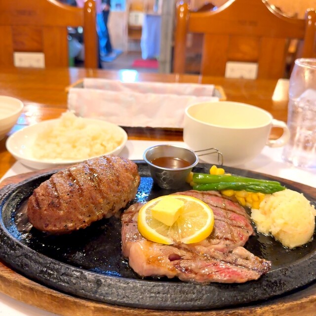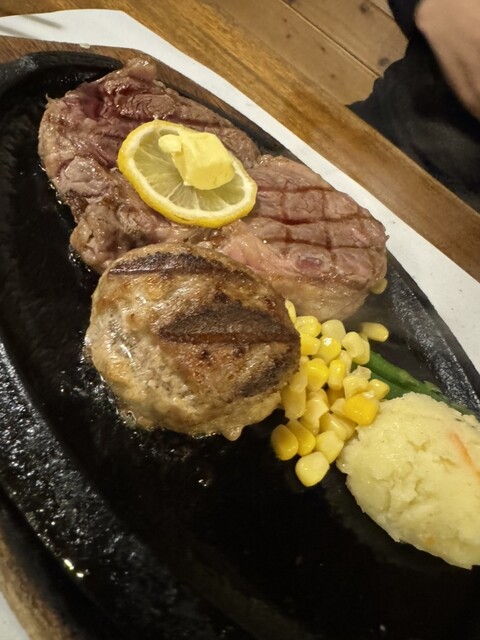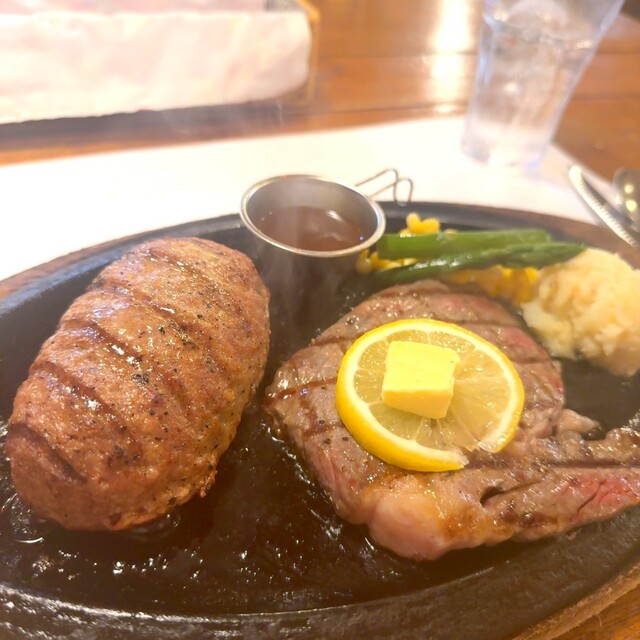 頼んだのは、ハンバーグ×リブロースステーキのセット。