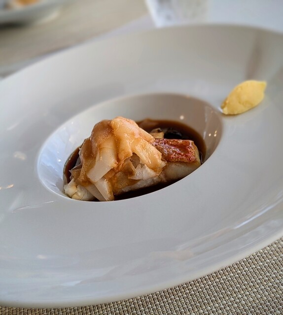 完成形。濃厚なフュメドポワソンを感じますが、なんと甲殻類は一切使っていないとのこと!凄く美味しかったです。大好きなアカマチも、皮目パリッと、身はふんわりでした。