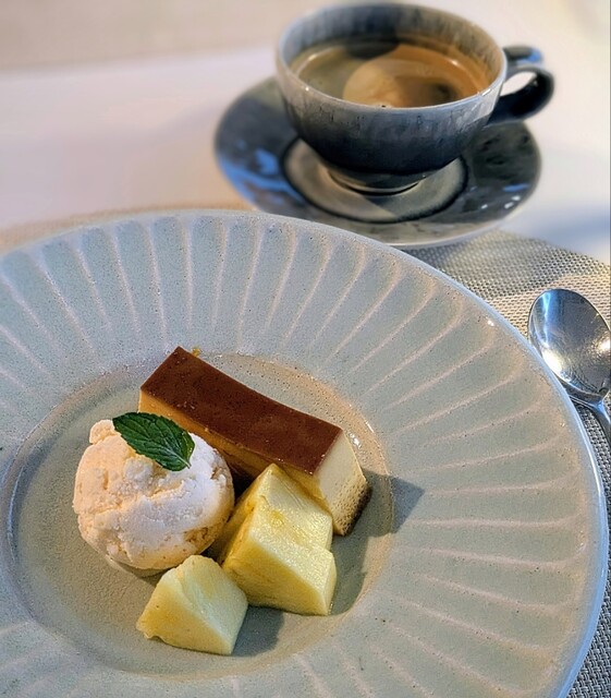 こちらもチョイス可能なデザート。クレームキャラメルとピーチパインにバニラアイス