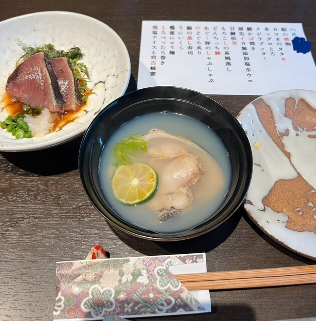 宮古島での記念日ディナーをどこで食べるか迷い、一番気になったげん家さんに訪問しました。一斉スタートで20:00〜伺いました。どれも美味しく、ホスピタリティも素晴らし買ったです。マグロが特に美味しかった...