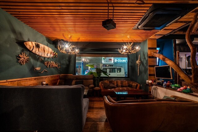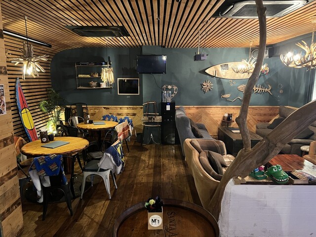 | 空間・設備 | オシャレな空間、落ち着いた空間、席が広い、カウンター席あり、ソファー席あり、カラオケあり、ダーツあり、スポーツ観戦可、電源あり、無料Wi-Fiあり |