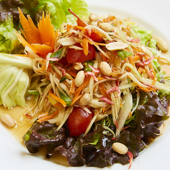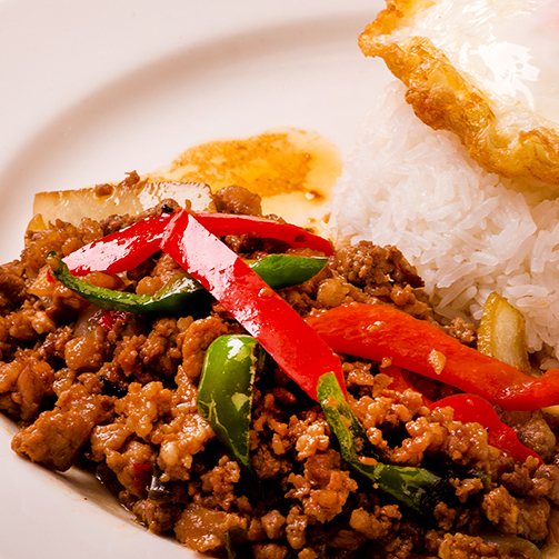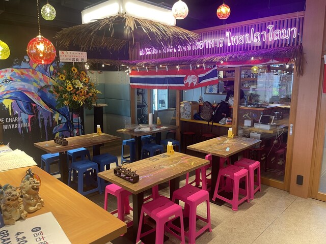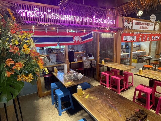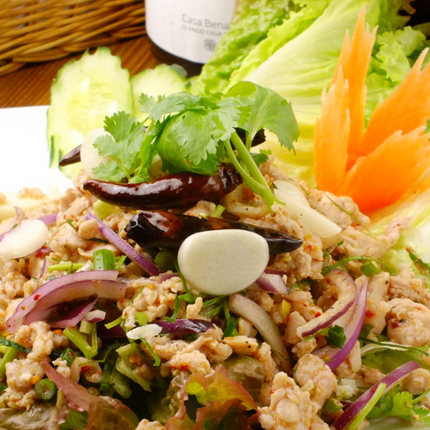 タイ人の料理人が本場のタイ屋台料理を提供。エスニックなハーブのきいた辛い料理から、お子様も安心して食べられる料理まで幅広いメニューを用意
