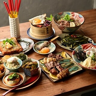あぐー豚の炭火もつ焼きや創作エスニックを厳選のお酒と堪能◆ペットOKのテラス席や貸切も可