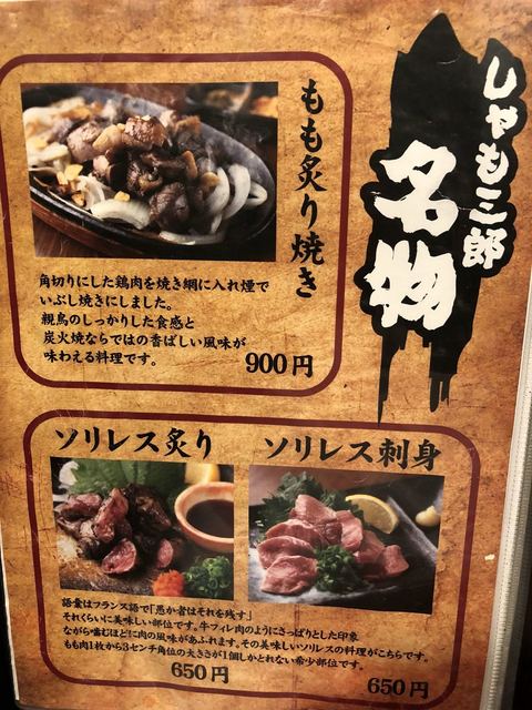 | 店名 | しゃも三郎 (闘鶏 三郎 しゃもさぶろう) |
