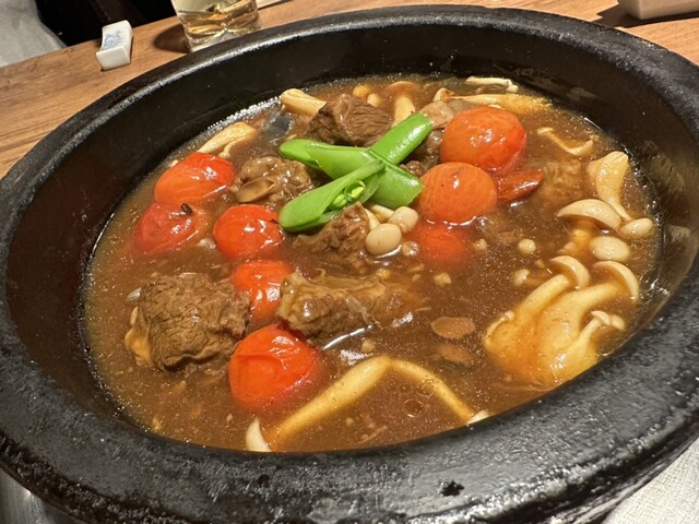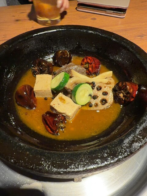 石鍋とは山海の幸の風味をごま油でとじ込めた後に煮詰め、油とアクを丁寧に掬いとってから、旨味とごまの香り堪能するアジアの王朝料理。創業以来人気の「石鍋コース」では、石鍋に加え、あさりのスープ、前菜を5品程度と〆ものを楽しめます。20時30分以降は前菜1品のみで手早く石鍋を楽しめる「鍋セット」もご提供。異国的なインテリアの店内は、4名テーブルが4卓のみの落ち着ける空間。中国酒も多数取り揃えています。