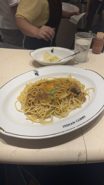 インディアンスパゲッティ(930円)を大盛り(50円)でいただきます。スパゲッティは注文が入ってから炒められるようです。しばらくしてから出来上がり♪