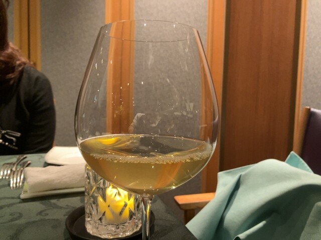 王道・定番の本格フレンチコース「ムニュ オルディネール」を私はペアリングワイン3杯、嫁ちゃんはノンアルコール スパークリングワインと共にいただきます。