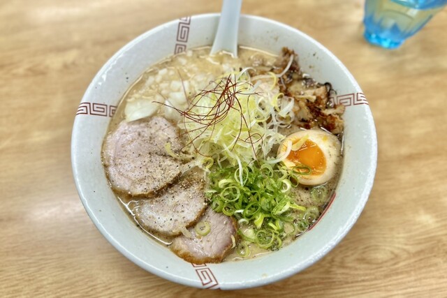 鶏白湯ベースの塩味のスープは濃厚でクリーミー!鶏の旨みと共に感じるのはエビや貝柱などの旨み!いい塩梅で紫蘇の風味が香ばしくてジューシー!少し太めのストレート麺はもっちり歯応え!スープとの絡みが抜群!具はチャーシュー、味玉、ネギ、胡麻など!ちゃーしゅー麺にするとスライスちゃーしゅーとちゃーしゅーのへた(端っこ)を炒め...