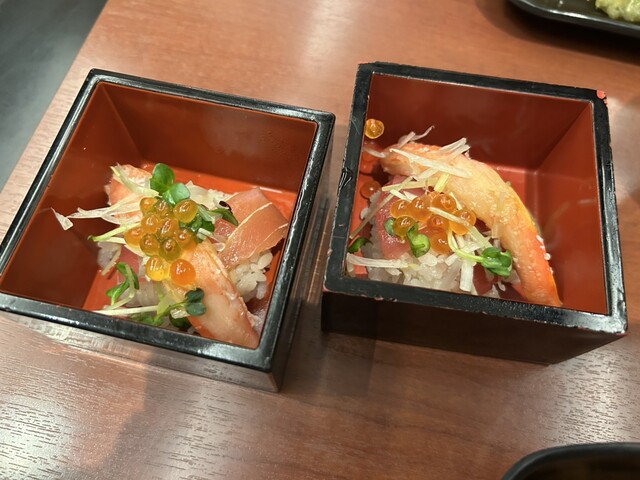 メバチマグロとズワイ蟹の重ね寿司がとても美味しくて、おかわりしました。
