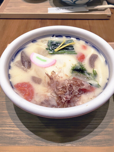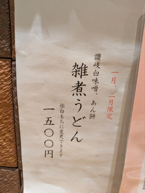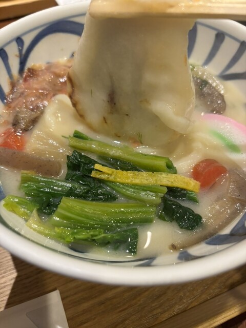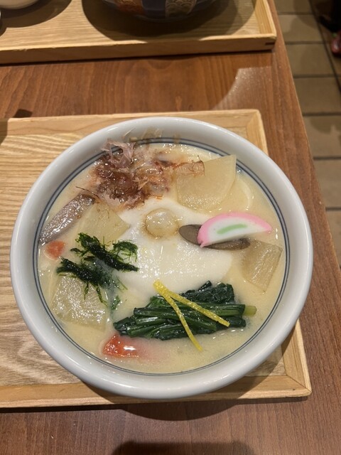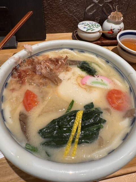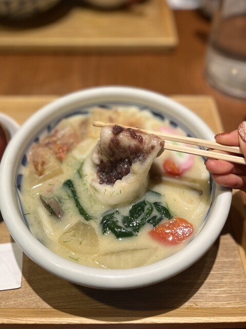 この時期しか食べることが出来ないと言う点もあってか一時間以上待ちました。待ってよかったです。とてもおいしかったです。回転も思っていたよりも早くてよかったです。餡餅にうどんははじめての組み合わせでしたが...
