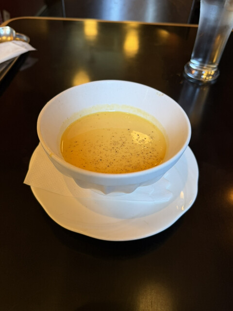 梅田で所用を済ませた後にランチで利用しました。 ランチは12時半に開店ですが、10分もしないうちに満席で、以降のお客さんはお断りされていました。 メニューは1種類でスープ、メイン、パン、飲み物でたった1000円でした。 ⚫︎スープ 春野菜のブイヨンスープでした。具が豊富で、カリフラワー、大... 詳細を見る