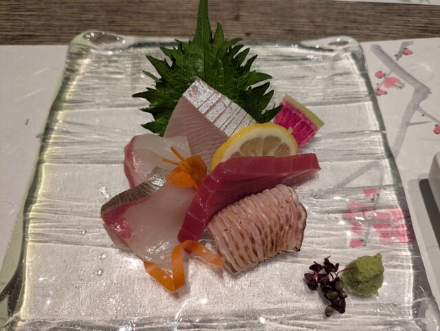 大阪出張 仕事先の先生をもてなすお店をと利用しました。 落ち着いたお店をとのリクエストにピッタリな高級感あるお店 JR大阪駅と地下で繋がってるので天気が悪い時でも安心 桜橋口利用が便利かな徒歩2分高級ブランド店が多く入るビルの5F 店エントランスには錦鯉が泳ぐ豪華さ 出迎えてくださるスタッフも丁寧でしたよ!! 乾杯は、完璧な泡が見事なビール お通しで運ばれてきた、いくらの茶碗蒸... 詳細を見る