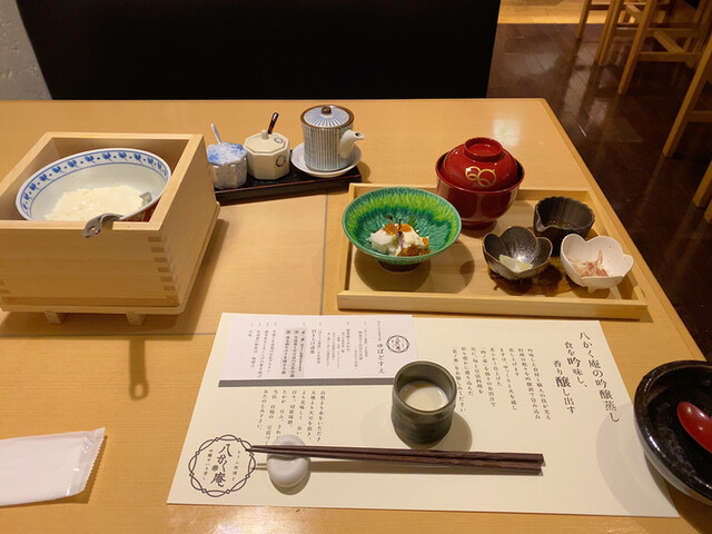 豆乳湯豆富小鍋をメインとした八かく会席。 飲み放題は、前日迄のお申込で お1人様+1650円(税込)でお付けできます。