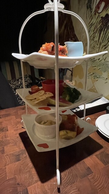 梅田の茶屋町のDDハウス1F「幻想の国のアリス」に友達のリクエストで3名18時で予約。 お店には仮面のオブジェやトランプの装飾やミラーなど、独特のインテリア。 案内された席は外... 詳細を見る