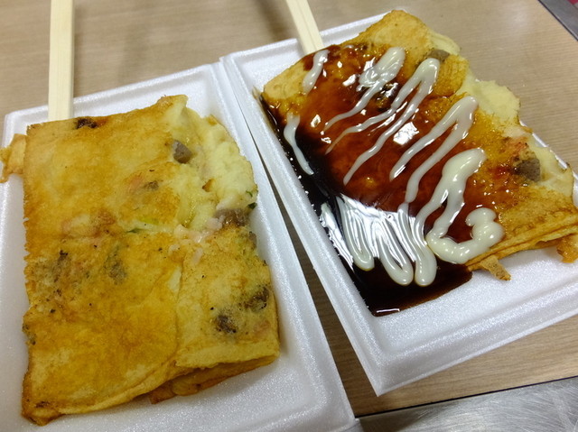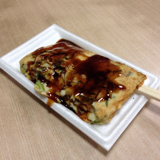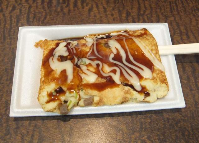 たこ焼きをつぶしたような、お好み焼きのようか感じですごく美味しいです!!!