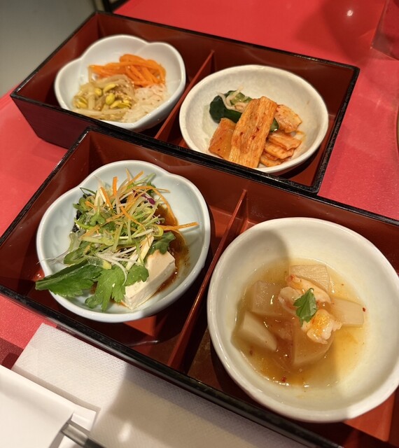 トントロ、キムチ盛り合わせ、ナムル盛り合わ