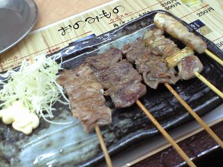 牛バラ、牛ハラミ、牛ツラミ、カモねぎ、若どりの串焼きがセットになったワンコインの松ぼっくりセットや、300円のとん平焼きを始めとして、料理はどれもそこそこおいしくてそこそこのボリューム。