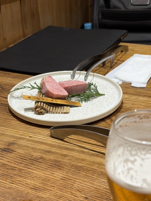 9,000円の和みコースを予約。いろんな部位を一枚ずつ丁寧に焼いていただきます。いいお肉で油に甘味もあって大変美味しいです。どの部位も一枚ずつで、コースには肉寿司もあったりしますが、お肉ばかりになるの...